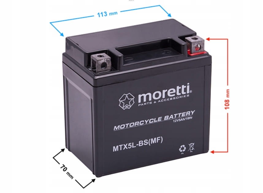 Akumulator do skutera, do quada, do kosiarki 5Ah 12V Moretti MTX5L-BS 2025r